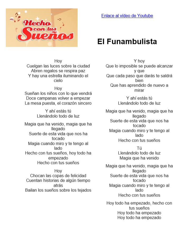 Asunto HECHO CON TUS SUEñOS 2014 Letra Funambulista canción Música 2014 Nuevo